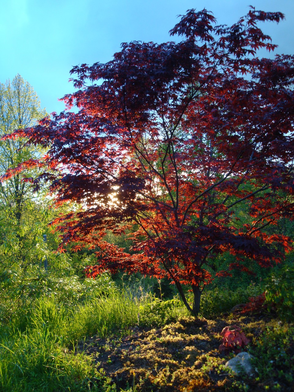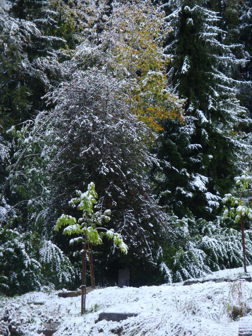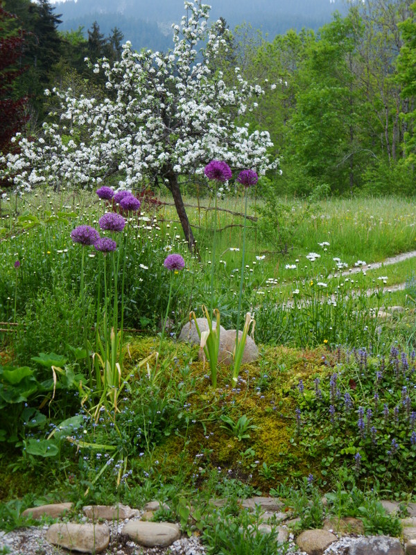 Am Fuss des Teichdamms wurden Korbweiden gesteckt. Diese werden als Kopfweiden erzogen. Die schon vorhandenen Obstbäume wurden durch weitere Sorten ergänzt. Sogar ein Nussbaum, und noch gewagter in dieser Hühenlage! Edelkastanien werden gepflanzt. Sie bekommen den geschütztesten, sonnigsten Platz - und fassen Fuss! Die ganz am Anfang gepflanzten Bäume haben sich schon mächtig entwickelt. Die Zwetschge liefert kiloweise Früchte, der Fächerahorn wird immer schöner. Aus einem der Äste der Trauerweide wird in Teichnähe eine Tochter-Trauerweide gesteckt, die ebenfalls Fuss fasst. Die Blutbuche entwickelt sich prächtig. Sie könnte eines Tages der Hausbaum werden, wenn sie überlebt und von den nachfolgeneden BewohnernInnen des Schwendli nicht gefällt wird.